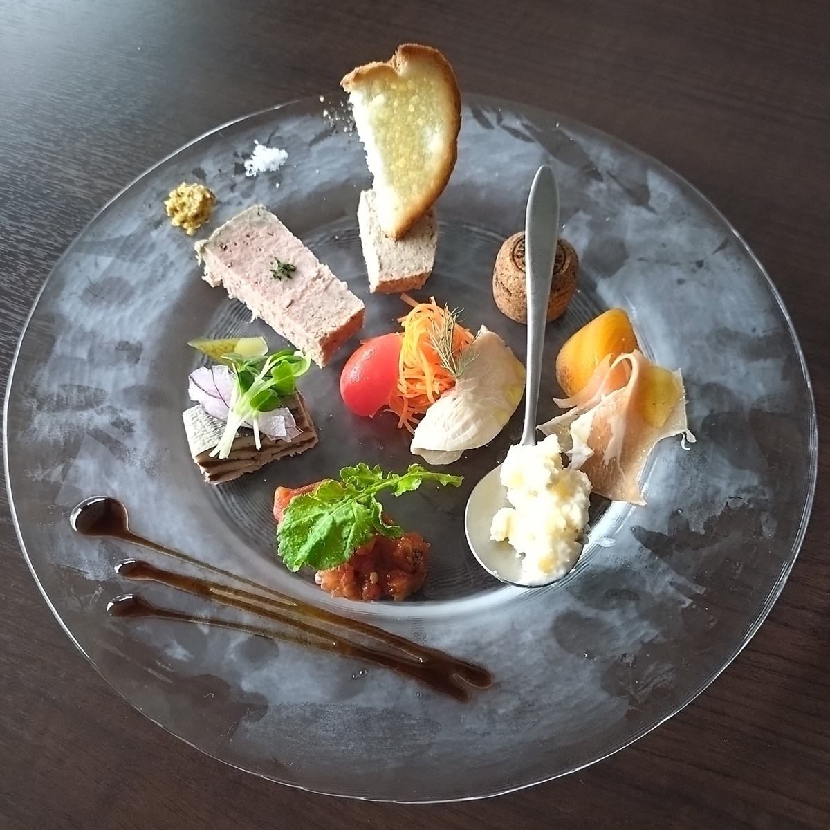 小さな前菜を彩り豊かに盛り合わせた押しの一品です!自家製シャルキトリーがご好評いただいております。シェアしにくいのでお一人様1品のご注文がおすすめです。